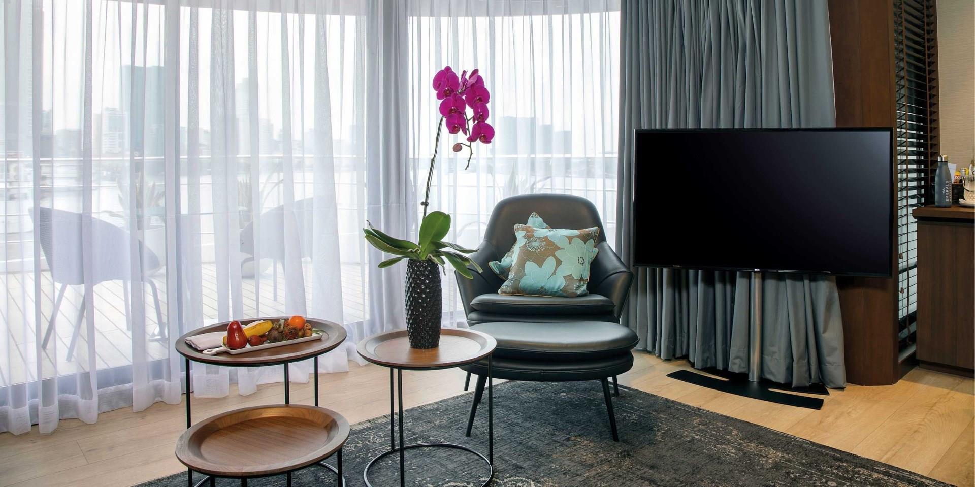 These beautifully appointed suites host an indoor private balcony with drop-down windows, as well as a separate bedroom and lounge area, providing plenty of space to unwind and relax.