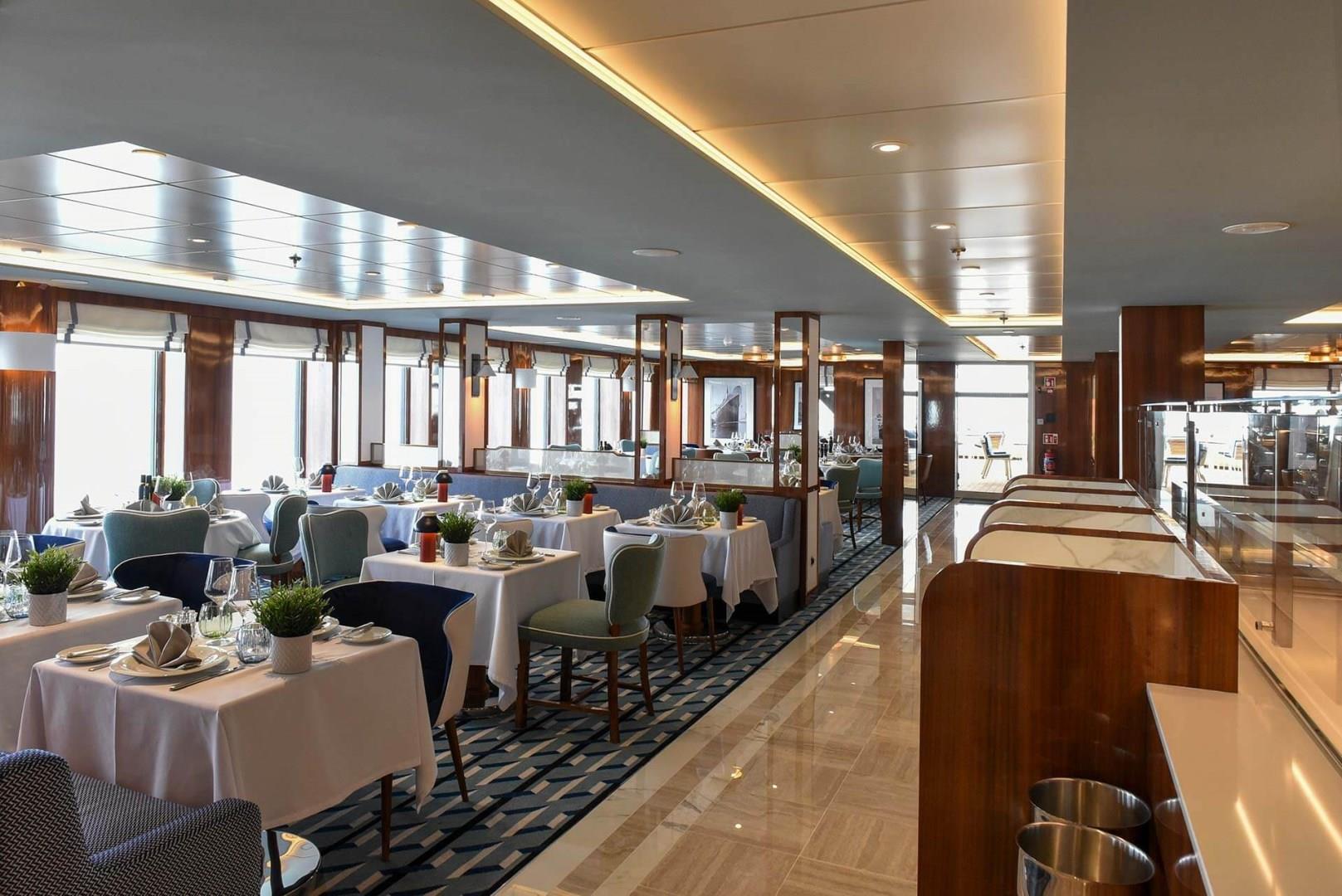 By day, 7AFT Grill serves a casual poolside lunch of tasty burgers, salads, flat breads and other classic favorites. By night, it transforms into an open-air chophouse for a Josper Grill dining experience. Savor the finest cuts of steak and fresh seafood, seared to perfection on a legendary Josper grill, the world leader in charcoal gastronomy. Exclusively on our Epicurean and Cultural Expeditions. Available when weather permits.